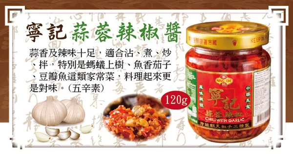 品名:《寧記》蒜蓉辣椒 120g/罐